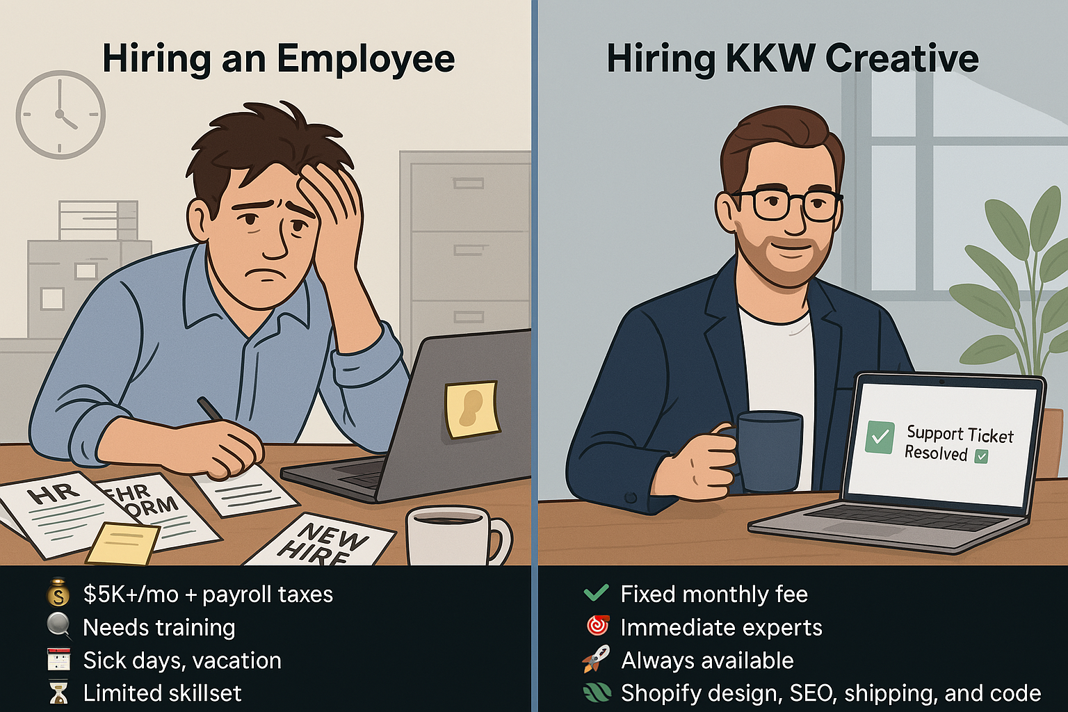 Why hire a full-time employee… when you could hire an entire Shopify SWAT Team?